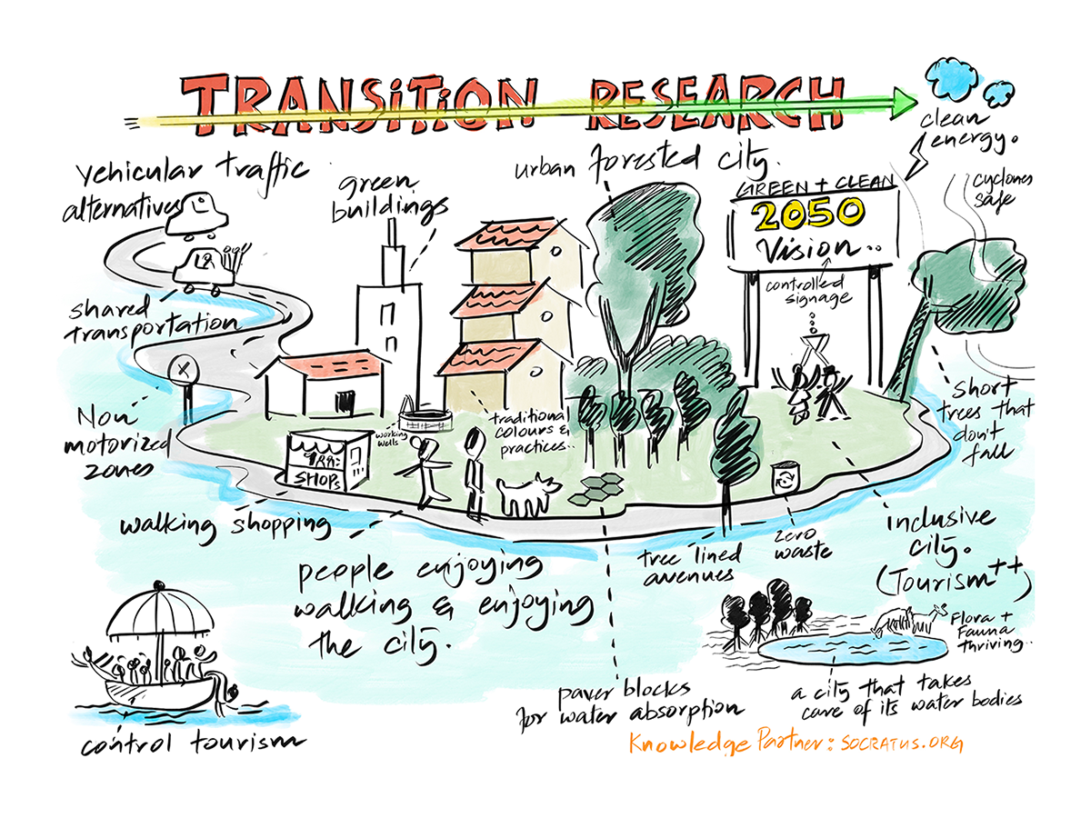 Collective sense making, using Technology Foresight Groups (TFG), scenario workshops, knowledge synthesis, and imagination walks.